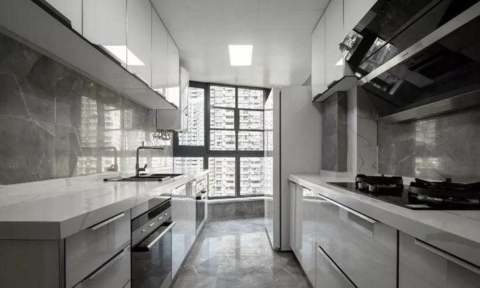 ▲ 廚房納入陽(yáng)臺(tái),改善廚房通風(fēng)與采光,擴(kuò)大使用面積,可以輕松納入大型廚電。
