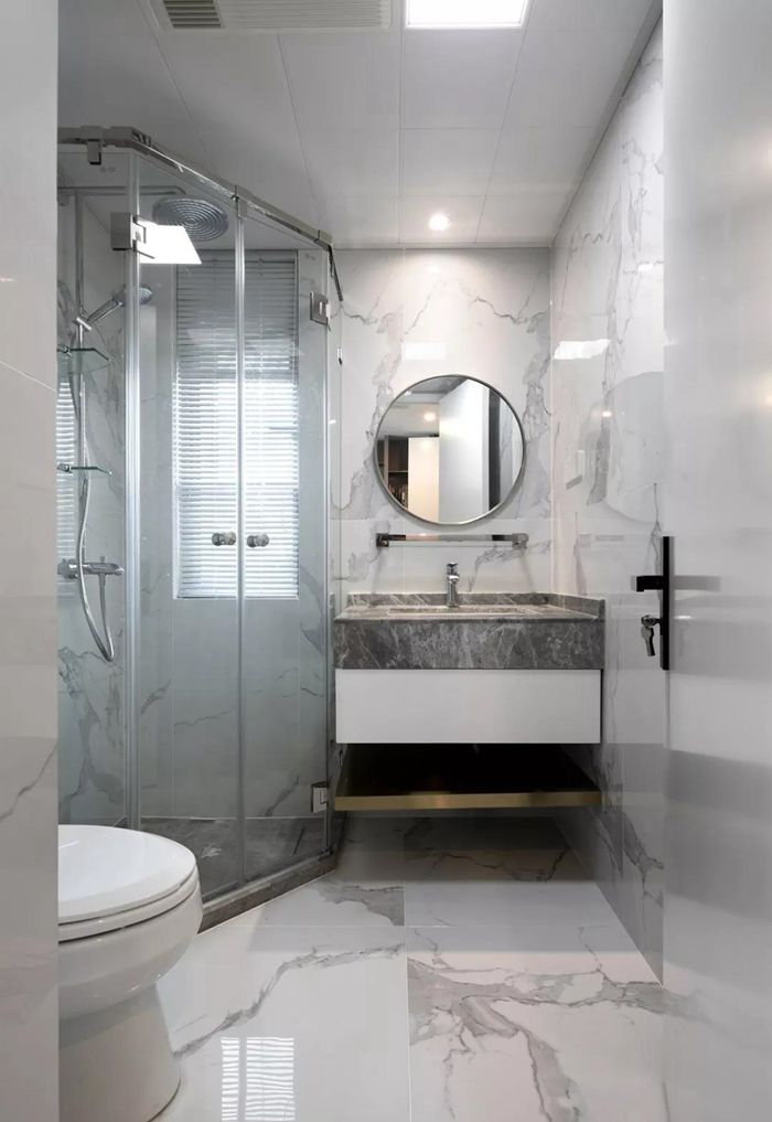 ▲ 主衛(wèi)以白色為基調(diào),簡(jiǎn)潔清爽,鉆石型淋浴房充分利用空間。