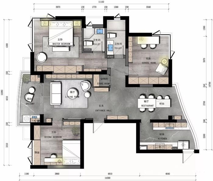 ▲ 使用面積150平,本案男主人是一位公司高管,女主人優(yōu)雅知性,兒子聰明活潑,業(yè)主希望自己的家有較多收納空間,希望隨手都能拿到書(shū)。