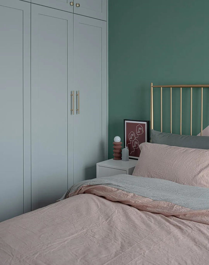 ▲ 衣柜和墻漆的顏色選擇同一色號定制,整個空間色彩融合清爽。