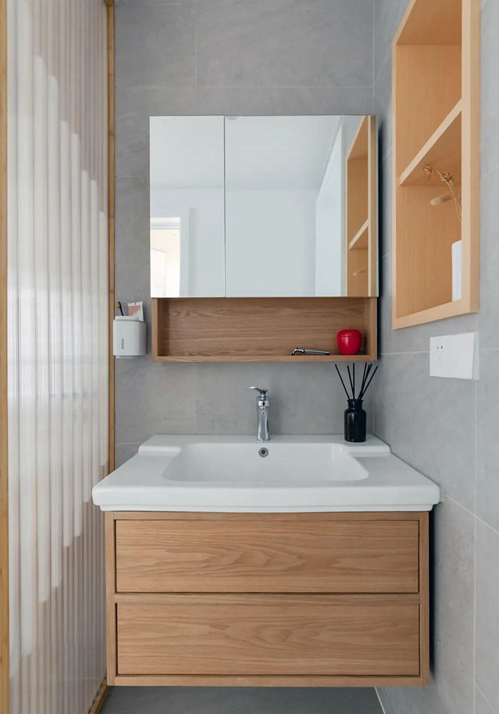 ▲ 濕區(qū)干凈利落,墻面設(shè)計(jì)壁龕可以隨手置放物品,非常實(shí)用。