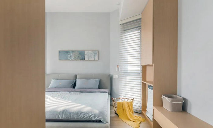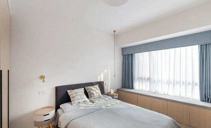 ▲ 次臥以簡(jiǎn)約實(shí)用為主,將原有飄窗改造成儲(chǔ)物卡座,增加收納空間。
