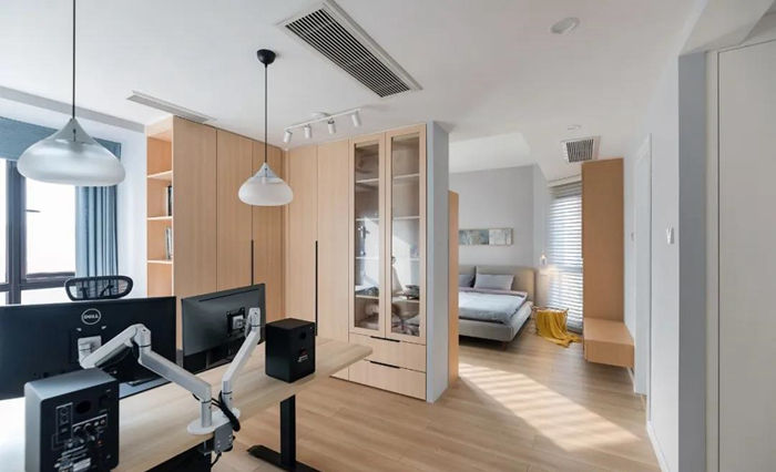 ▲ 主臥改造后成為了一間集臥室、書房、衣帽間、衛(wèi)生間于一體的多功能空間。
