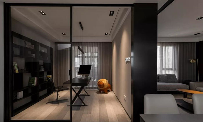 ▲ 書房采用大扇玻璃滑門,可以看到餐廳,空間之間可以有更多互動。