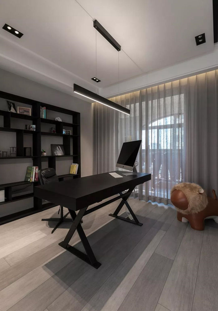 ▲ 書房整體布置格局簡潔,開放式書架可以收納大量的書籍和擺件。
