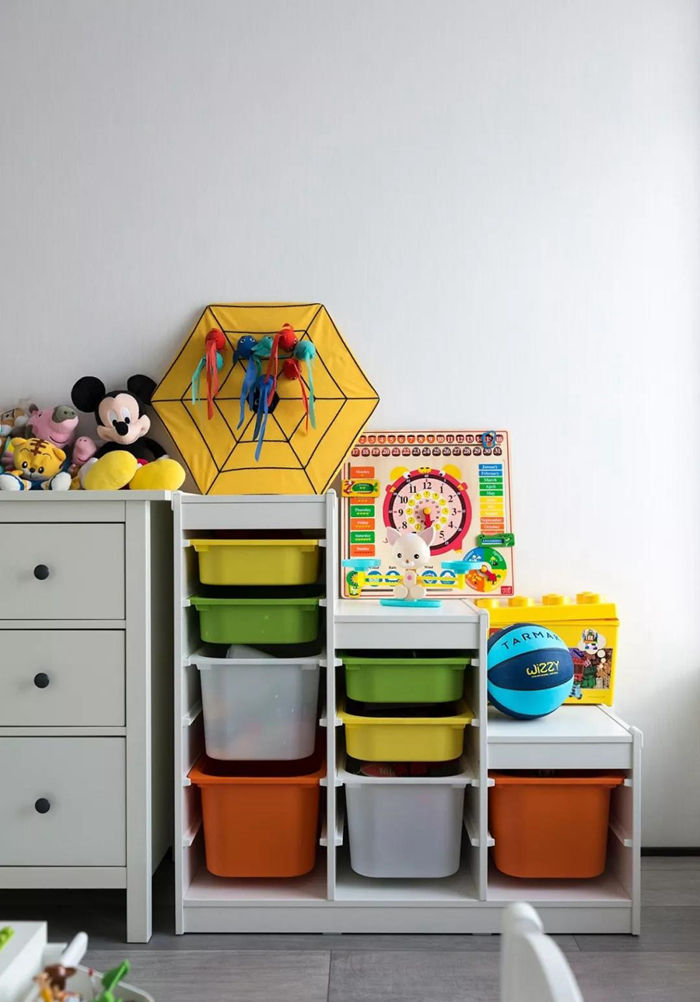 ▲ 多層次色彩豐富的分區(qū)盒子,有利于幫助孩子從小養(yǎng)成規(guī)劃物品擺放。
