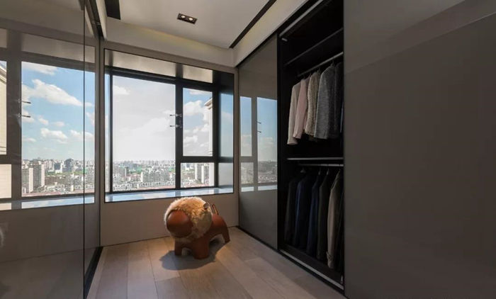 ▲ 衣帽間兩側(cè)打造大面積收納柜。