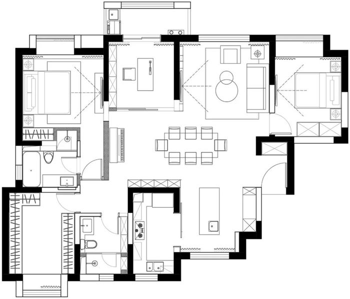▲ 使用面積130平,本案的戶型結(jié)構(gòu)較為復(fù)雜,過多的小隔間與過道浪費了大量的室內(nèi)空間,讓原始的空間布局顯得狹窄局促,業(yè)主希望可以更好的利用空間,達到更好的效果。